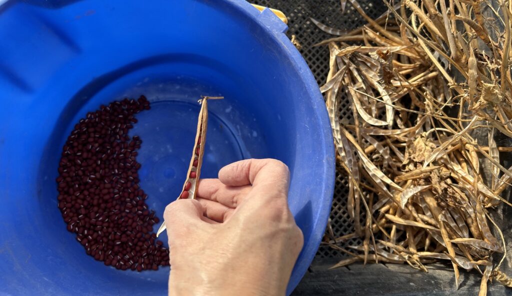 どこから来たのか分からぬまま、畑の隅でいつの間にか育っていた小豆の株に今さらながら感謝!